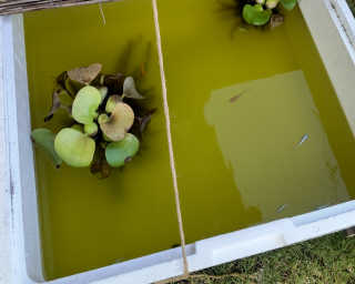 大丈夫?とかの話?から発泡スチロールの水槽(40x50)x1に戻してみた。さて...?。