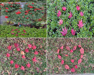 事業所桜の次もみじの紅葉が始まりもみじの葉が散って来たらハートに型に並べてみたくなった(#^.^#)。