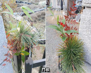 【注連縄飾り】:邪気・災を払う?/【門松】:年神様を迎え入れる?