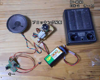 待てよと取出した裸の基板にスピーカ、電源006P(充電池)を接続し、キーはジャンク箱の基板に
