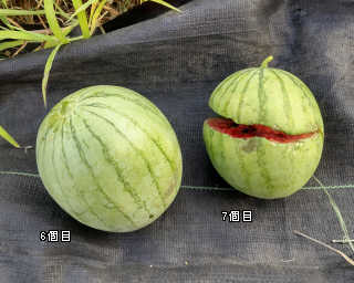 で、6個目7個目を収穫に行くと7個目が割れていてがっかりだった(*´ω`*)(6個目は大丈夫美味しかった)。