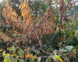 昨年も大木枝を枯らしてしまったが、今年も緑緑していたのに大枝が枯れてしまった。
